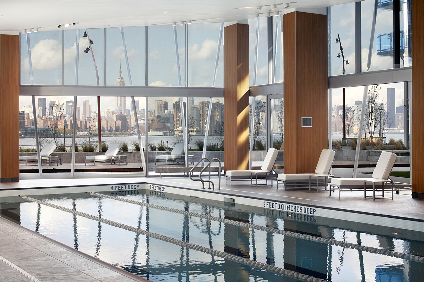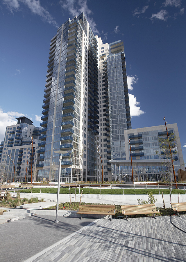 The EDGE represents one of the largest and most ambitious new construction mixed-use projects in New York City. Taking advantage of the pioneering young market of Williamsburg, the project occupies over seven prime acres along the East River that was a vacant commercial site prior to development. The EDGE was part of large scale redevelopment that included not only 565 condominium units, but also affordable housing, rental housing, parking, retail, two waterfront piers with on-site water taxi service, 35,000 square feet of public park space, and a riverside esplanade that adjoins waterfront parks to the north and south. All public spaces were built to the standard of the New York City Department of Parks and Recreation. The EDGE splits residences between two towers on the East River waterfront. The project has over 40,000 square feet of amenities shared between the two towers, which include an indoor/outdoor pool, an indoor basketball court, a golf simulator and spa facilities. Each tower also has its own fitness center and screening room. Additionally, the EDGE has 60,000 square feet of community retail, including a grocery store. The project benefitted from a 421 (a) tax abatement as a result of developing 347 moderate-income affordable housing units as a part of the Greenpoint-Williamsburg Inclusionary Housing Program. The project was certified as LEED Gold.